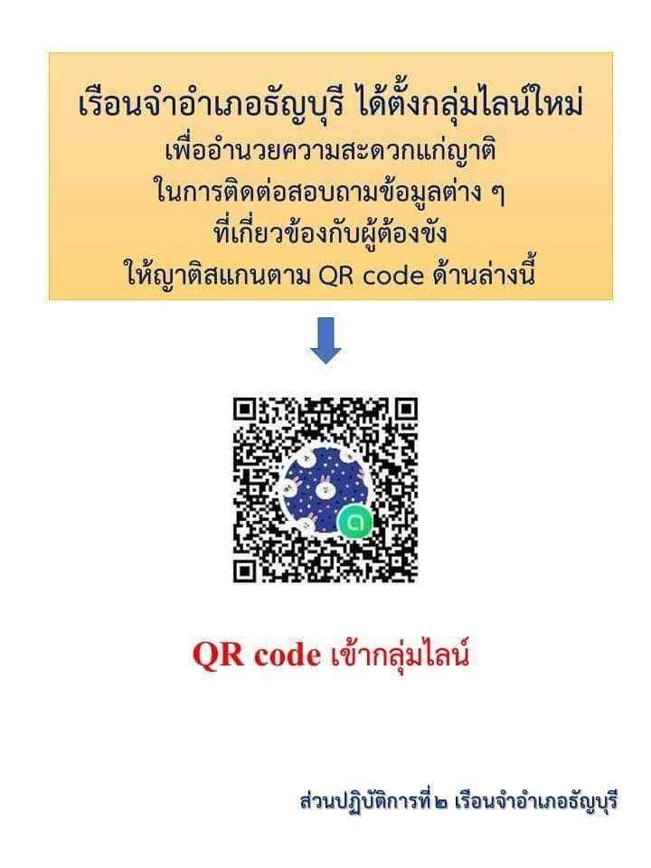 ญาติสามารถเข้าไลน์กลุ่มเพื่อรับข้อมูลข่าวสารของเรือนจำอำเภอธัญบุรี